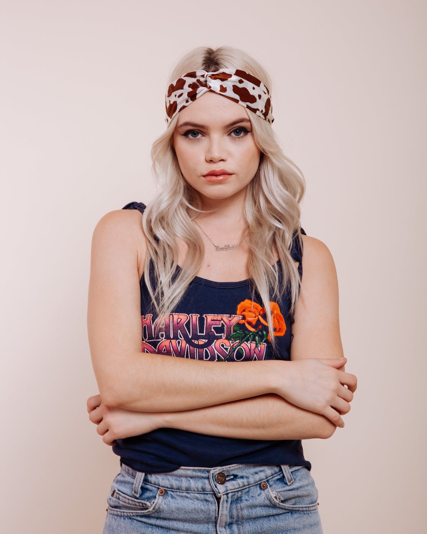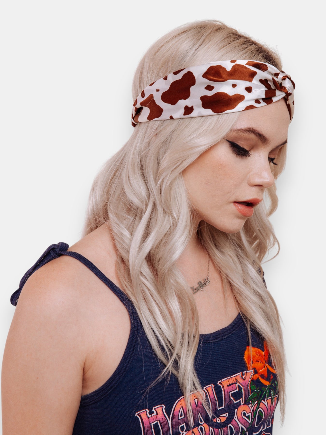 Never underestimate the power of a fabulous headband. This handmade, silk charmeuse, one-size-fits-most topper has a soft elastic band for all-day comfort, and its wild “Honky Cat” print brings that cowgirl-glam energy to any outfit.