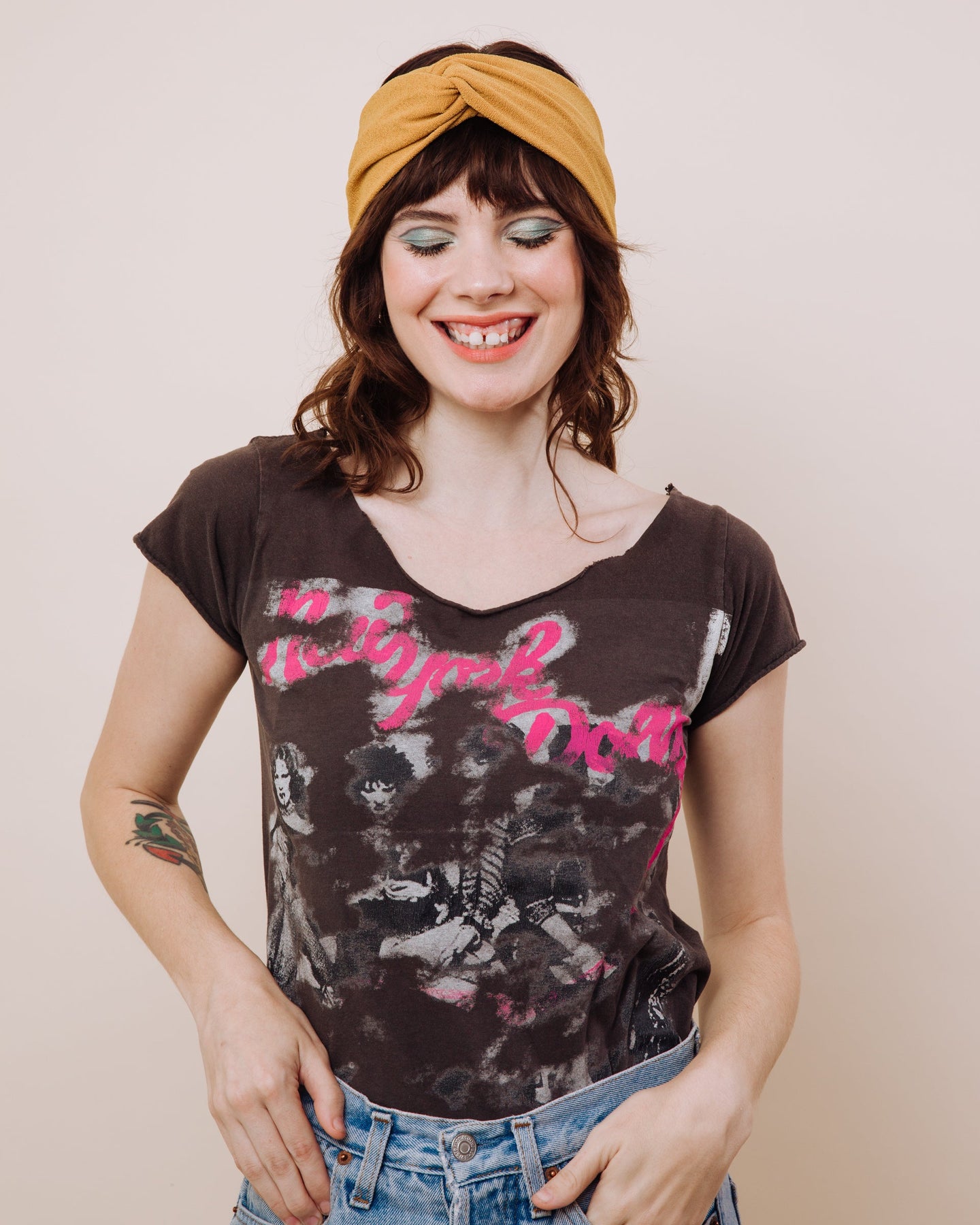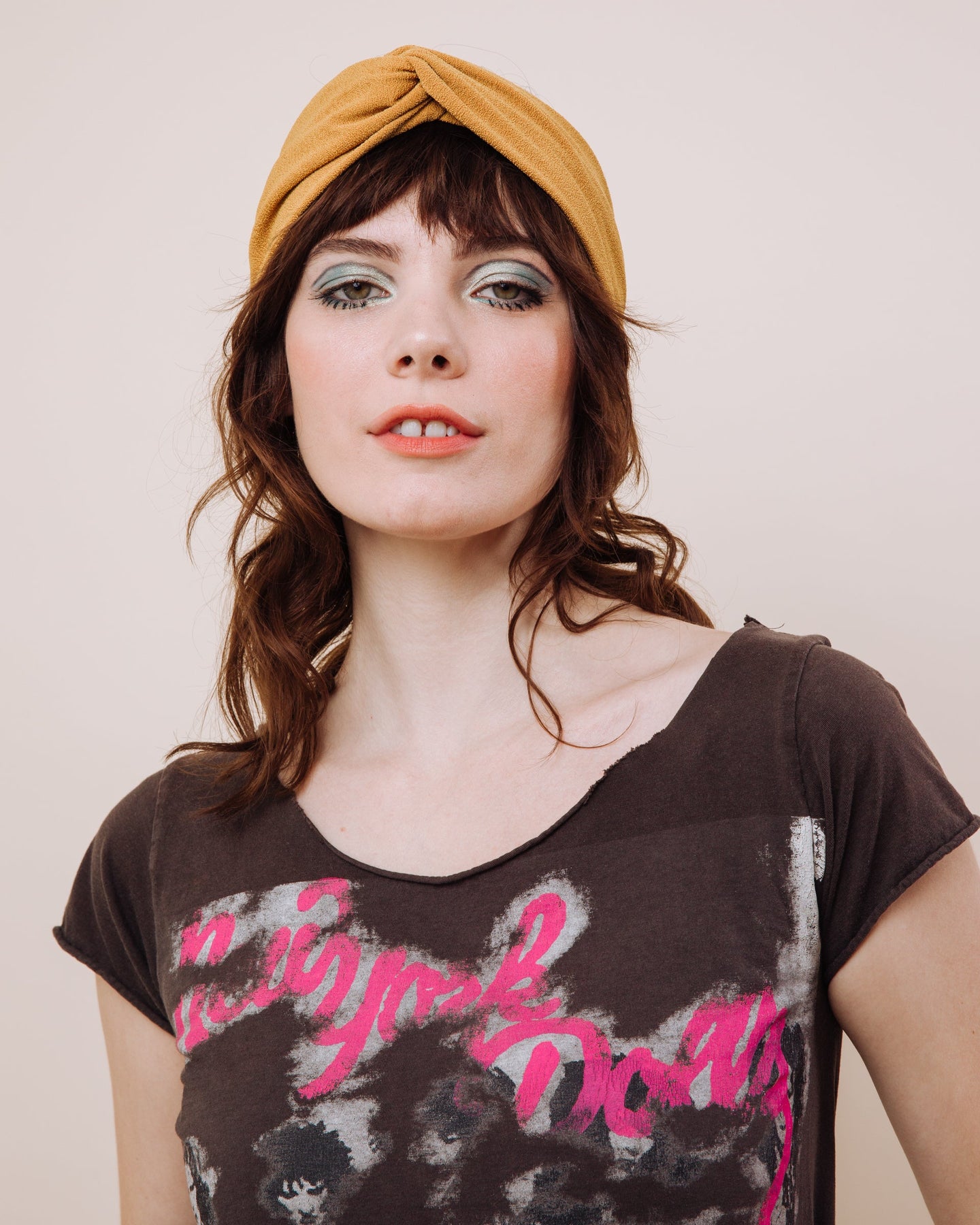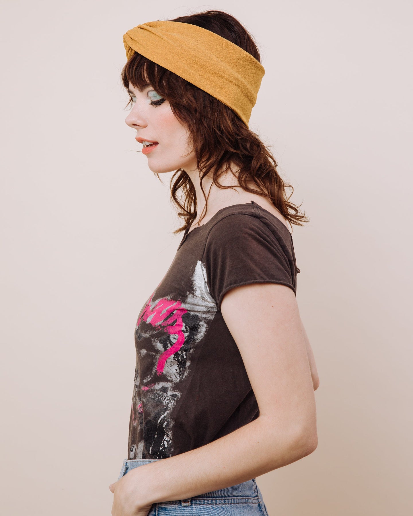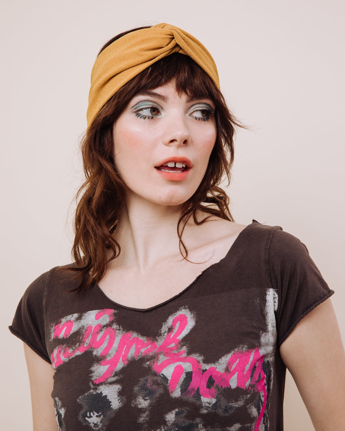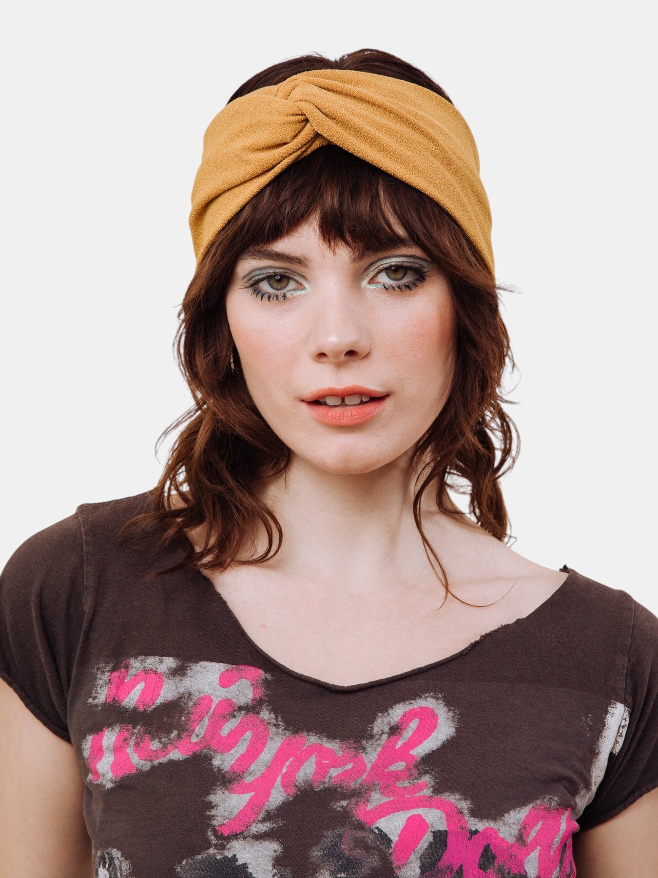 Never underestimate the power of a fabulous headband. This handmade, crepe-textured spandex, one-size-fits-most topper features a soft elastic band for all-day comfort, and its perfect mustard shade brings a warm, eye-catching pop to any outfit.
