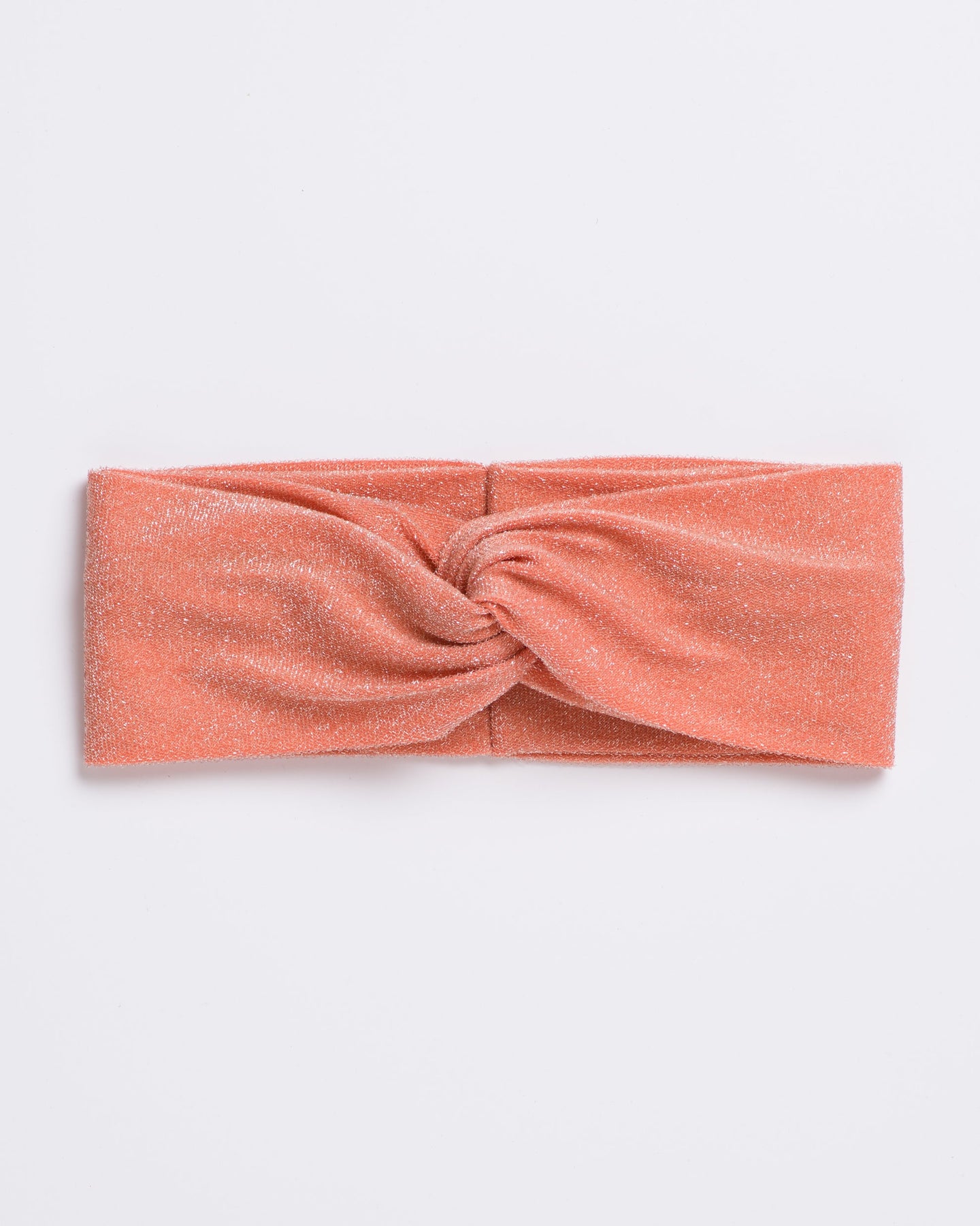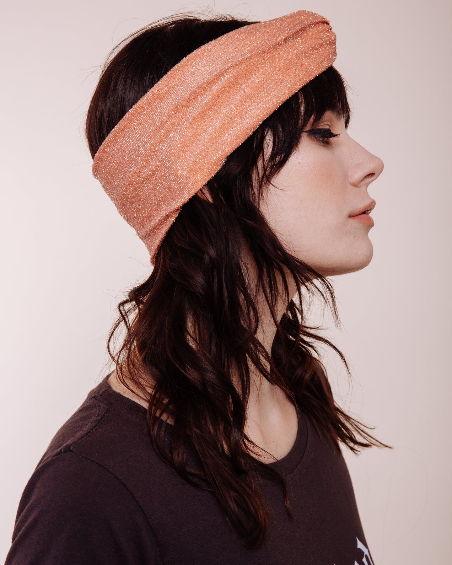 Never underestimate the power of a fabulous headband. This a peachy glittery, disco-inspired finish, one-size-fits-most turban style is an attention-grabbing accessory that is guaranteed to give you a chance to shine.