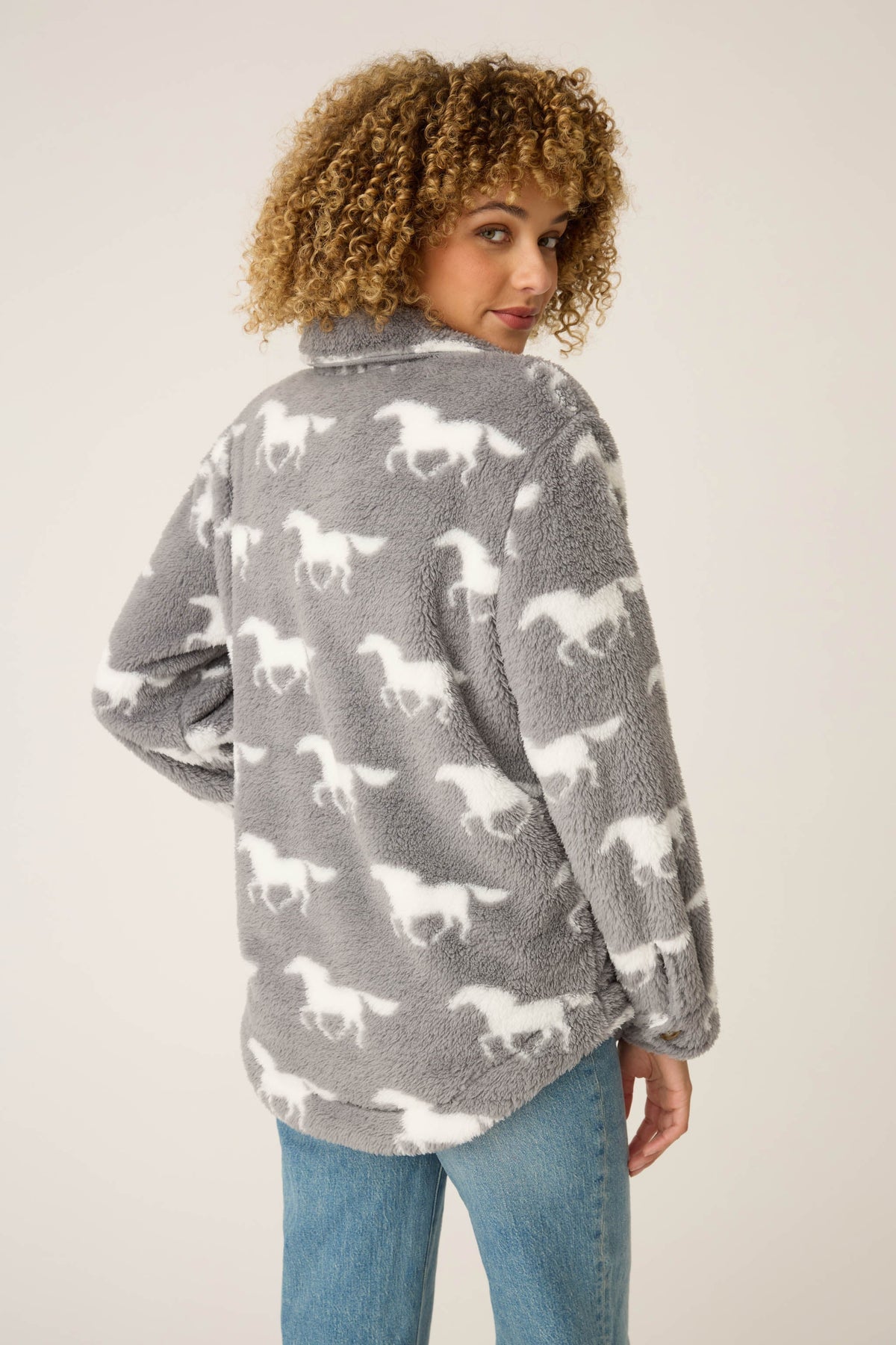 Let's Get Cozy Horse Print Cozy Plush Jacket