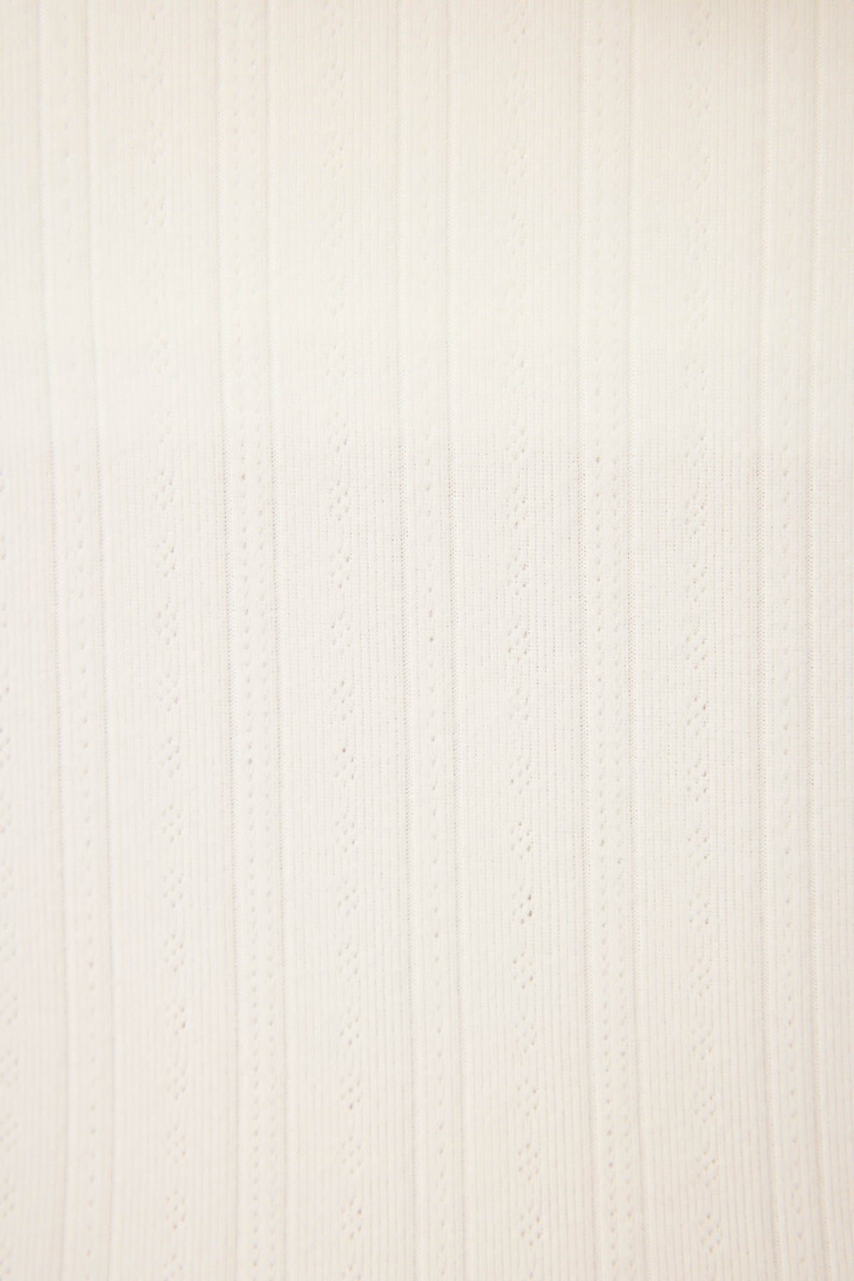The Pointelle Essentials Open Leg Pant is classic, breathable, and endlessly wearable. Crafted from soft double-brushed pointelle fabric in ivory with a subtle ribbed texture, it’s finished with an elasticized waistband and sweet lettuce-edge hems.