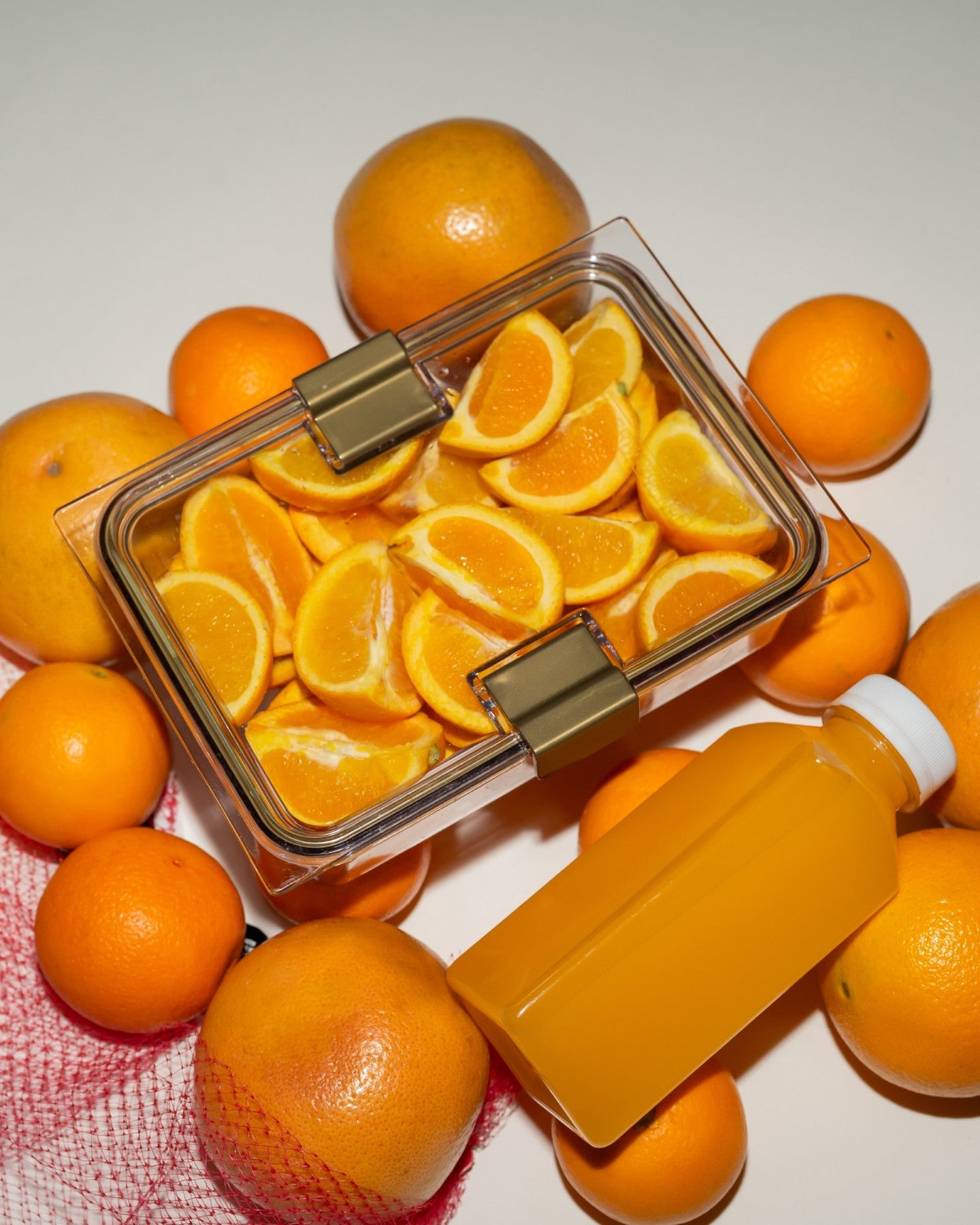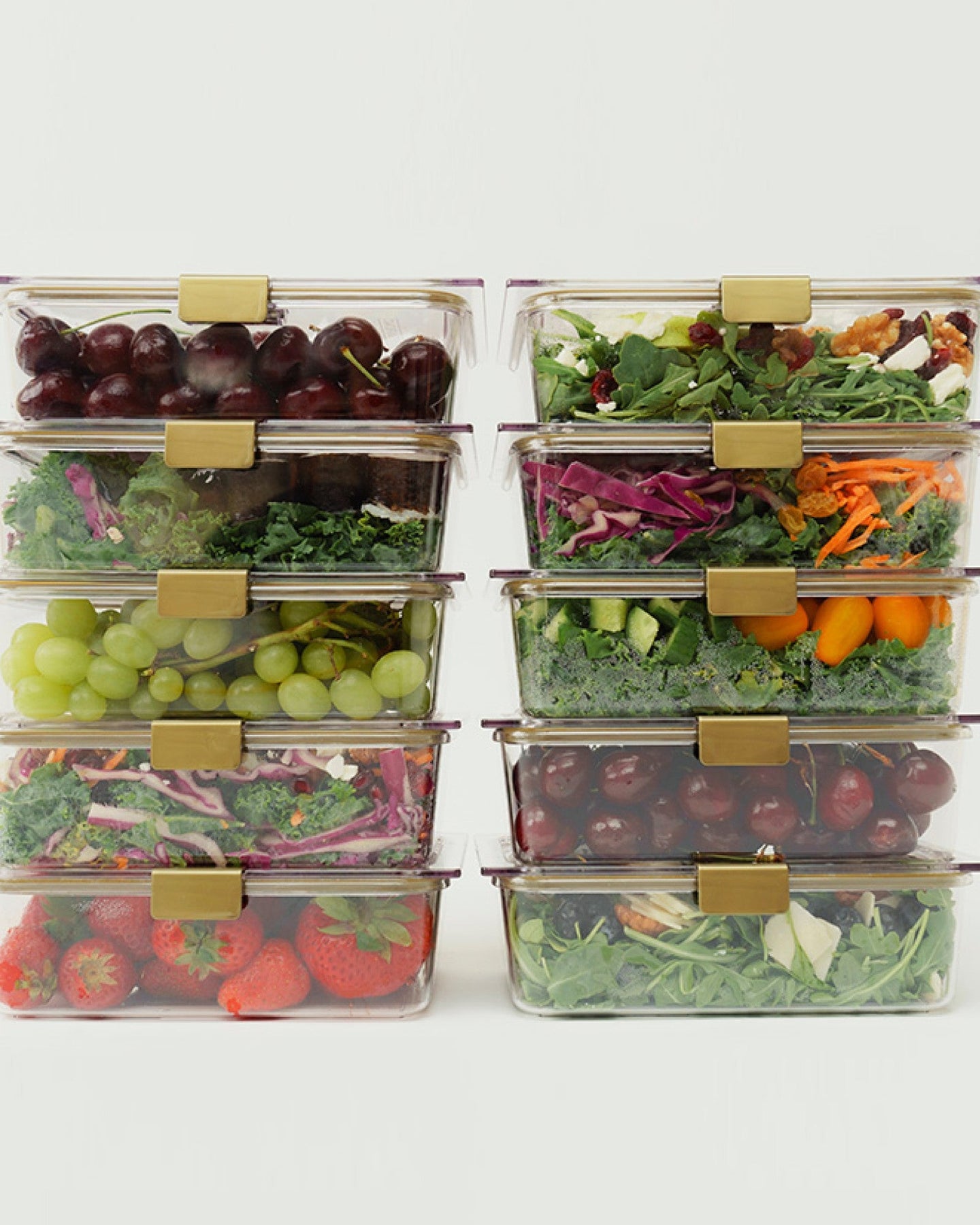 • Tritan Materials. BPA Free. Leak Proof. Stackable Structure. Functional, Sleek Design. Gold Clasps.