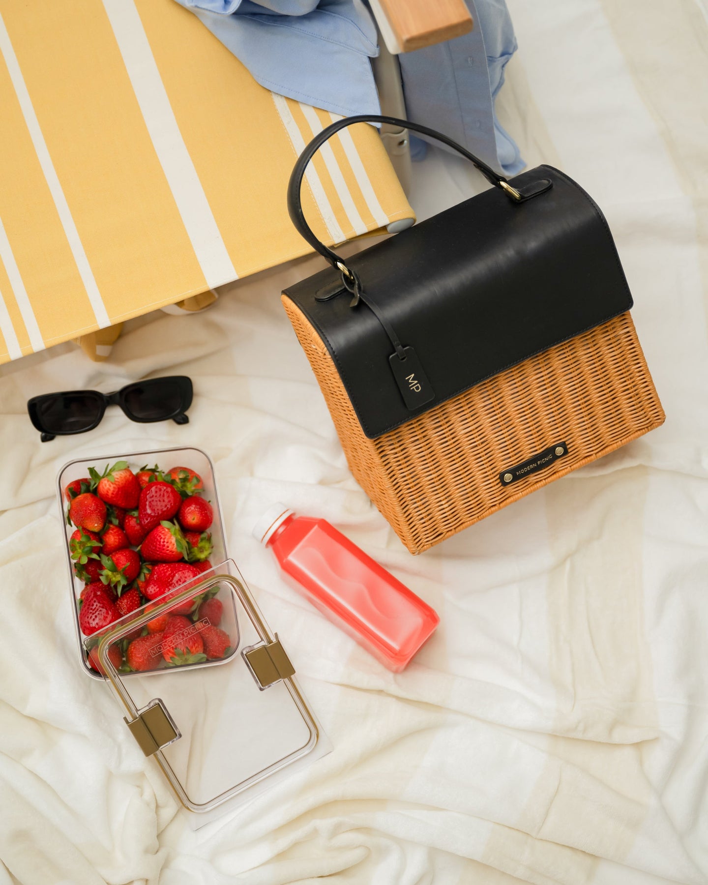 Long days require a large insulated bag that works seamlessly with your other accessories. Designed to keep your food fresh when you're out and about from sun-up to sundown, this reinvented lunchbox features a classic design, vegan leather exterior, removable strap and interior pockets for utensils and condiments—along with a magnetic closure and external pocket for all of your on-the-go dining needs.