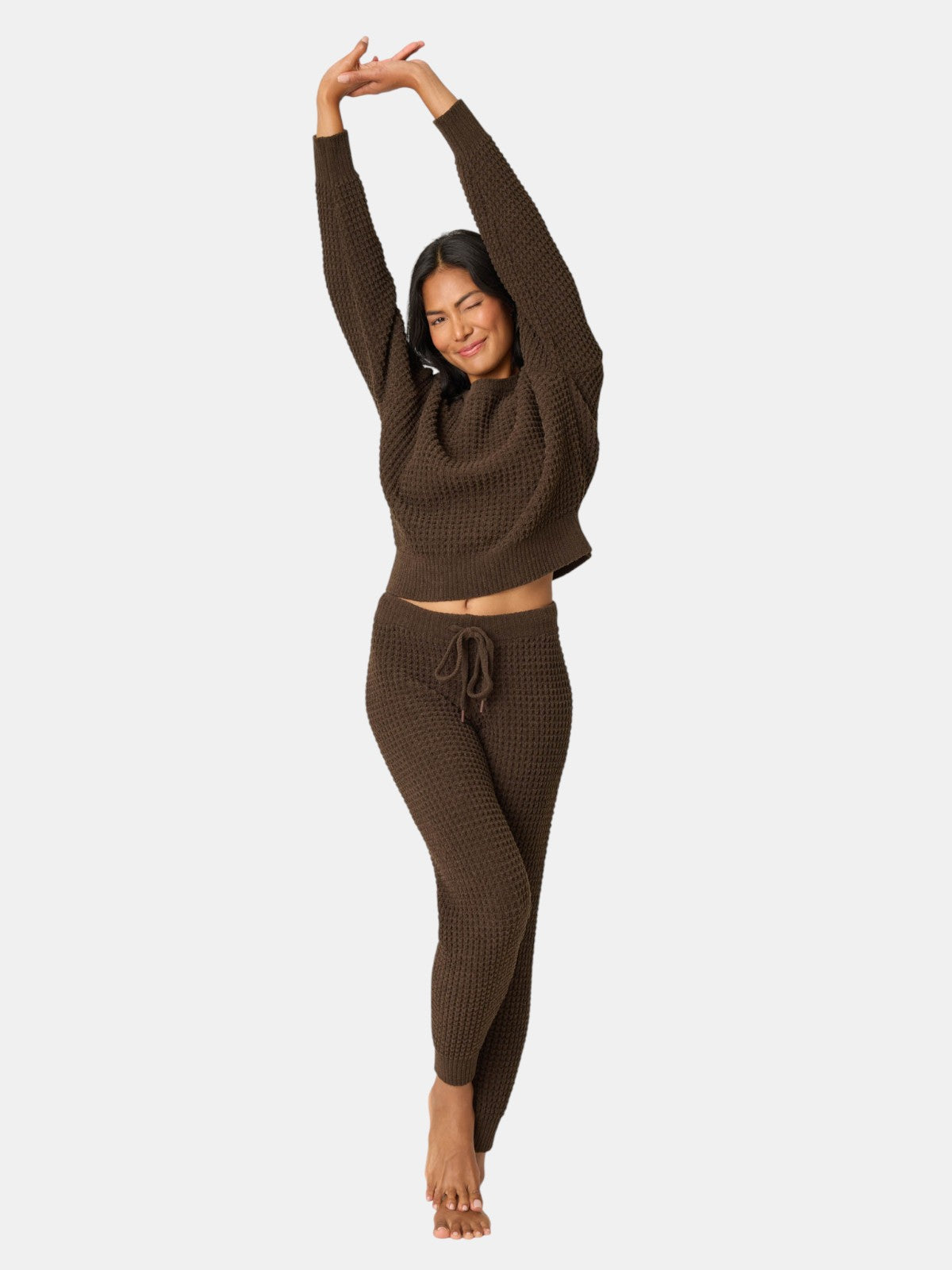 It’s soft beyond words—the chenille fabric feels velvety against the skin, while the cable knit design adds timeless charm. A lounge set that’s as comforting as it is classic.