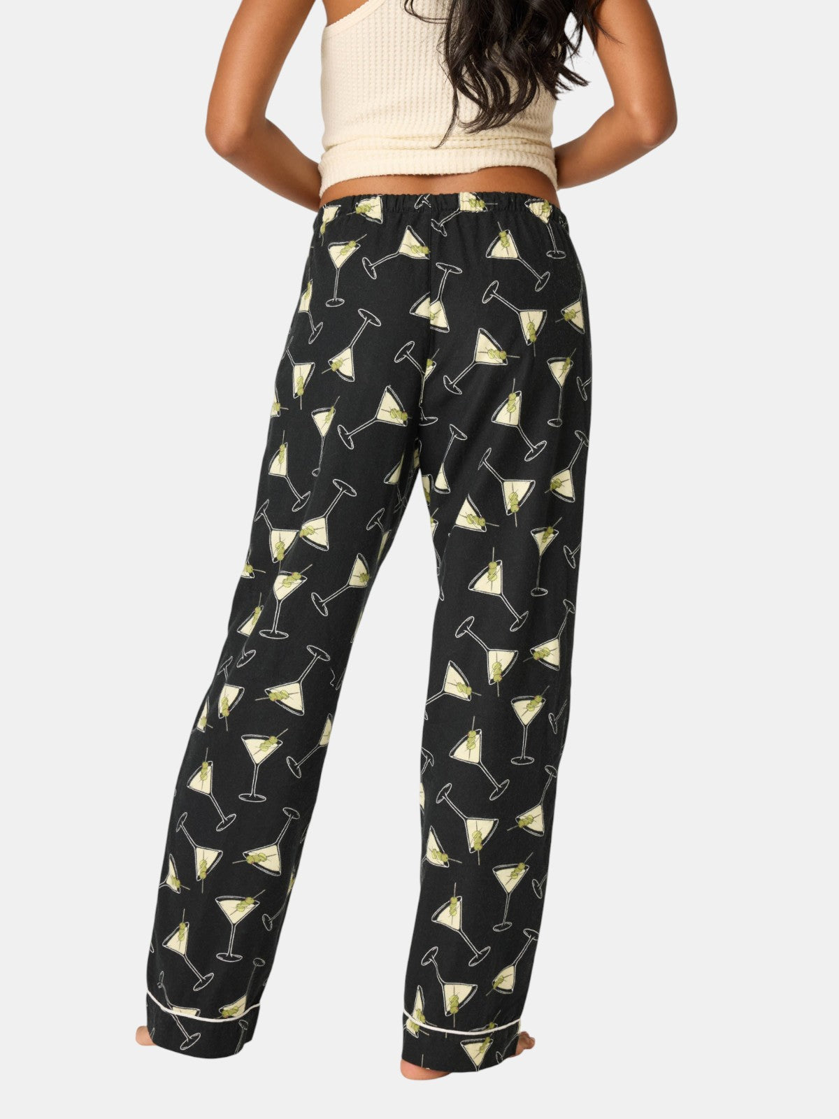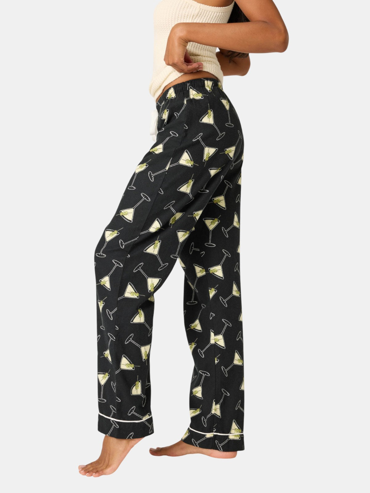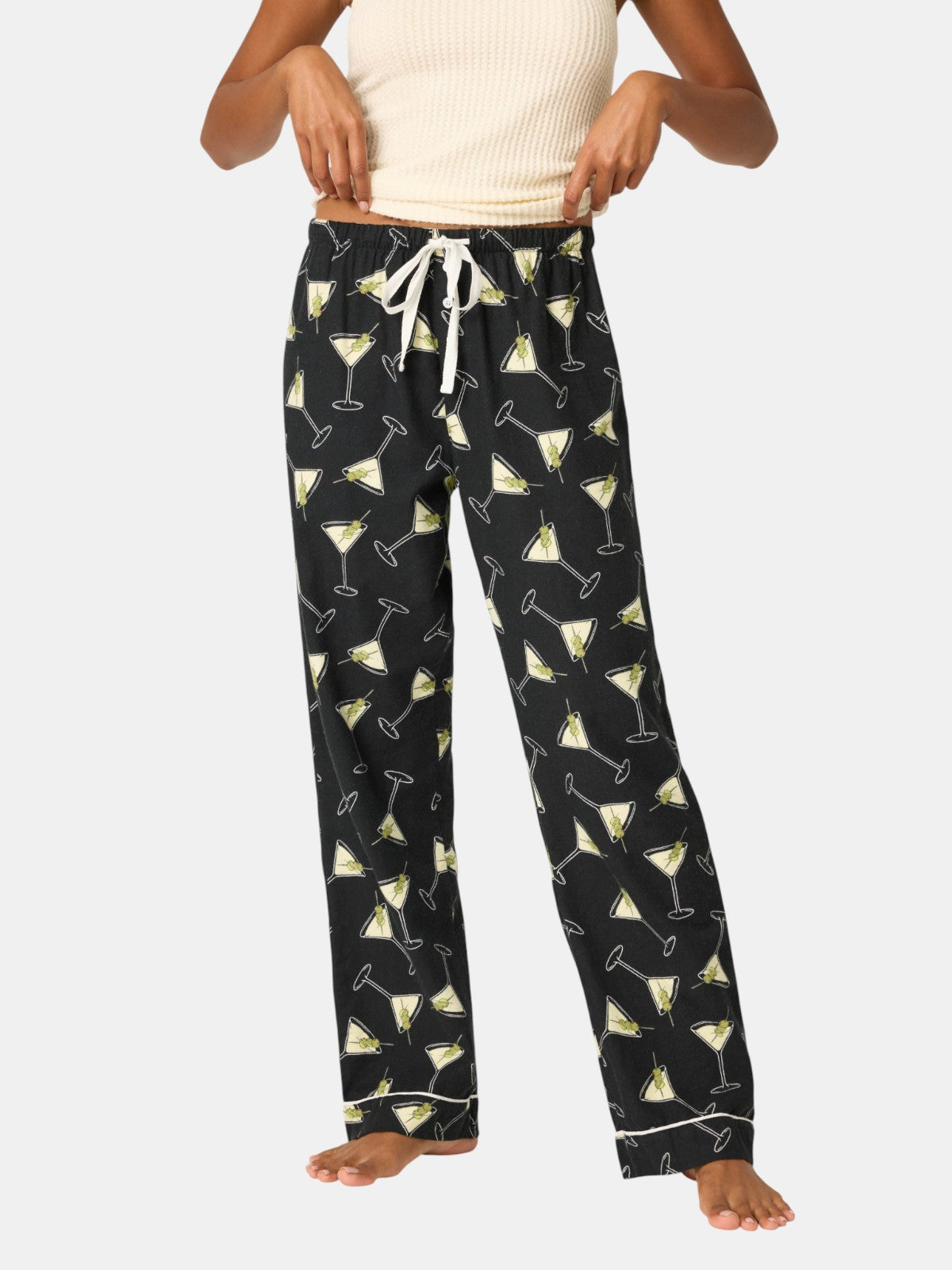 These pants brings pure joy to lounging—the cozy flannel feels soft and comforting, while the festive martini print adds a dose of lighthearted fun. It’s the kind of sleepwear that makes winding down feel cheerful and cozy all at once.