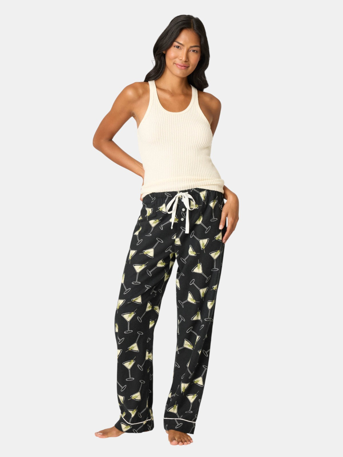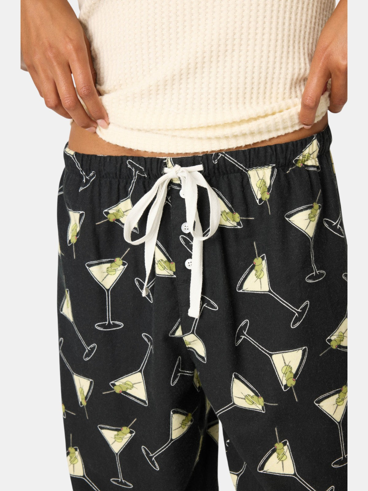 The Merrier With A Martini Flannel Pants are cozy, spirited, and designed with a Holiday touch. Made from soft cotton twill in a festive martini glass print, they feature a relaxed fit with an adjustable drawstring waist and an allover martini glass print.