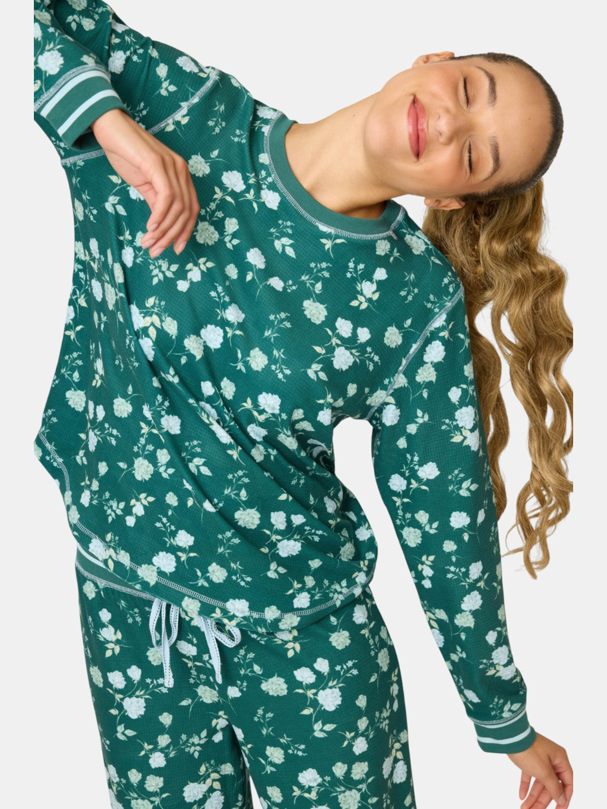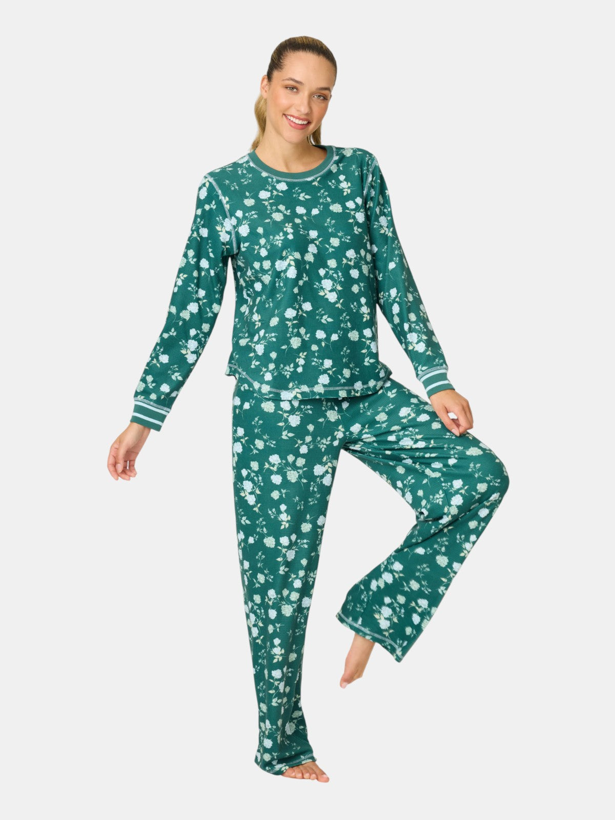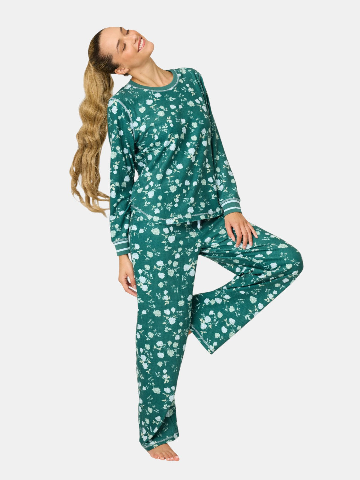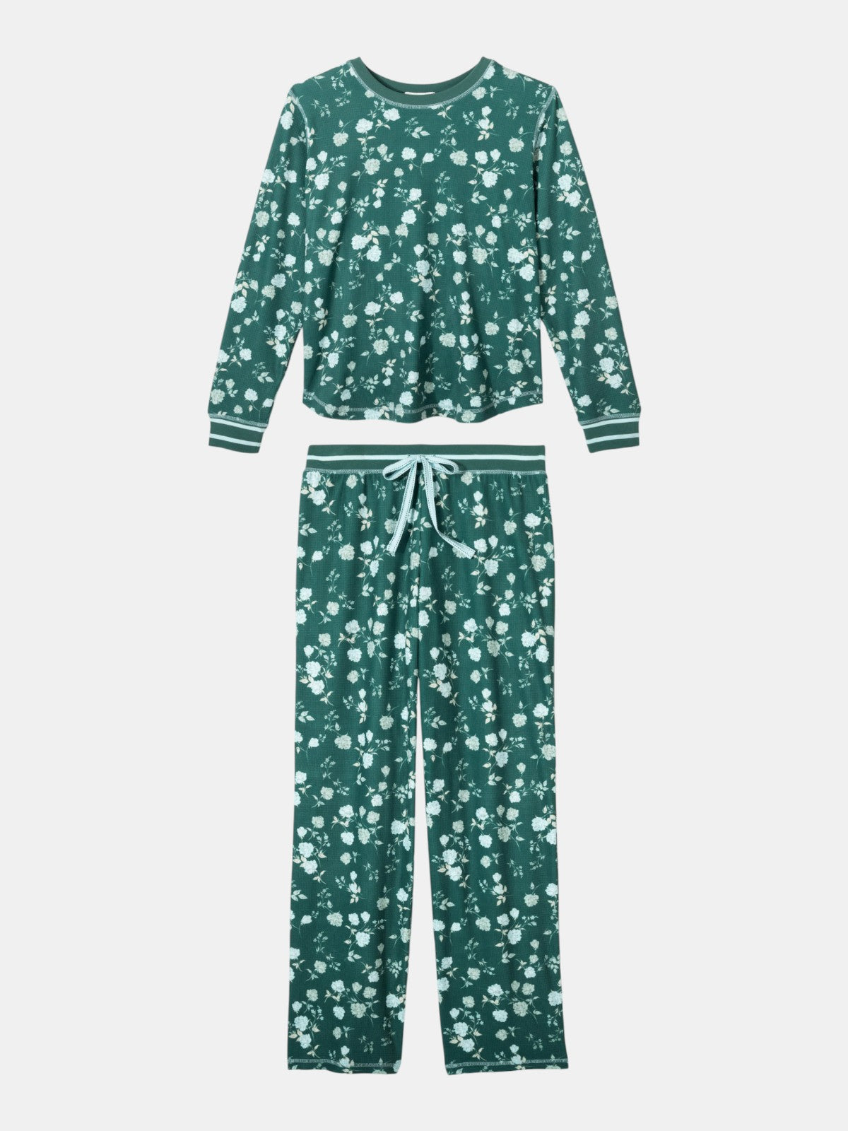 This set brings pure joy to lounging—the cozy velour feels soft and comforting, while the winter wonderland floral print adds a dose of holiday fun. It’s the kind of sleepwear that makes winding down feel cheerful and cozy all at once.