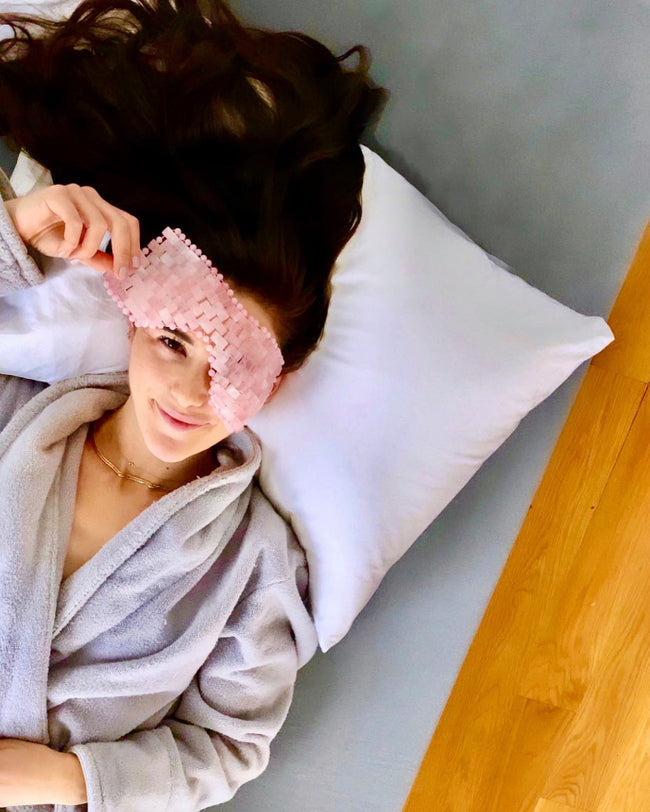 • Before or after using, make sure to wash your Rose Quartz Eye Mask with soapy water + lay down flat to air dry.